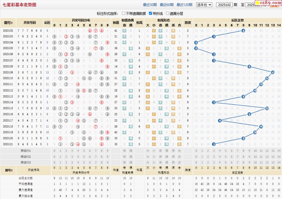 首页 > 七星彩预测 > 25年122期体彩七星彩近期走势图分析